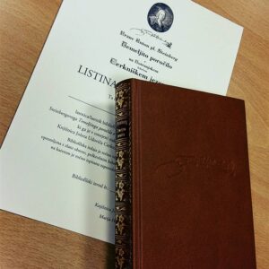 V imitacijo usnja vezani izvodi, zlatotisk, polkrožni hrbet, platnica povzeta po izvodu iz knjižnice grofa Kobentzla, bakrorezne priloge, vinjete, …